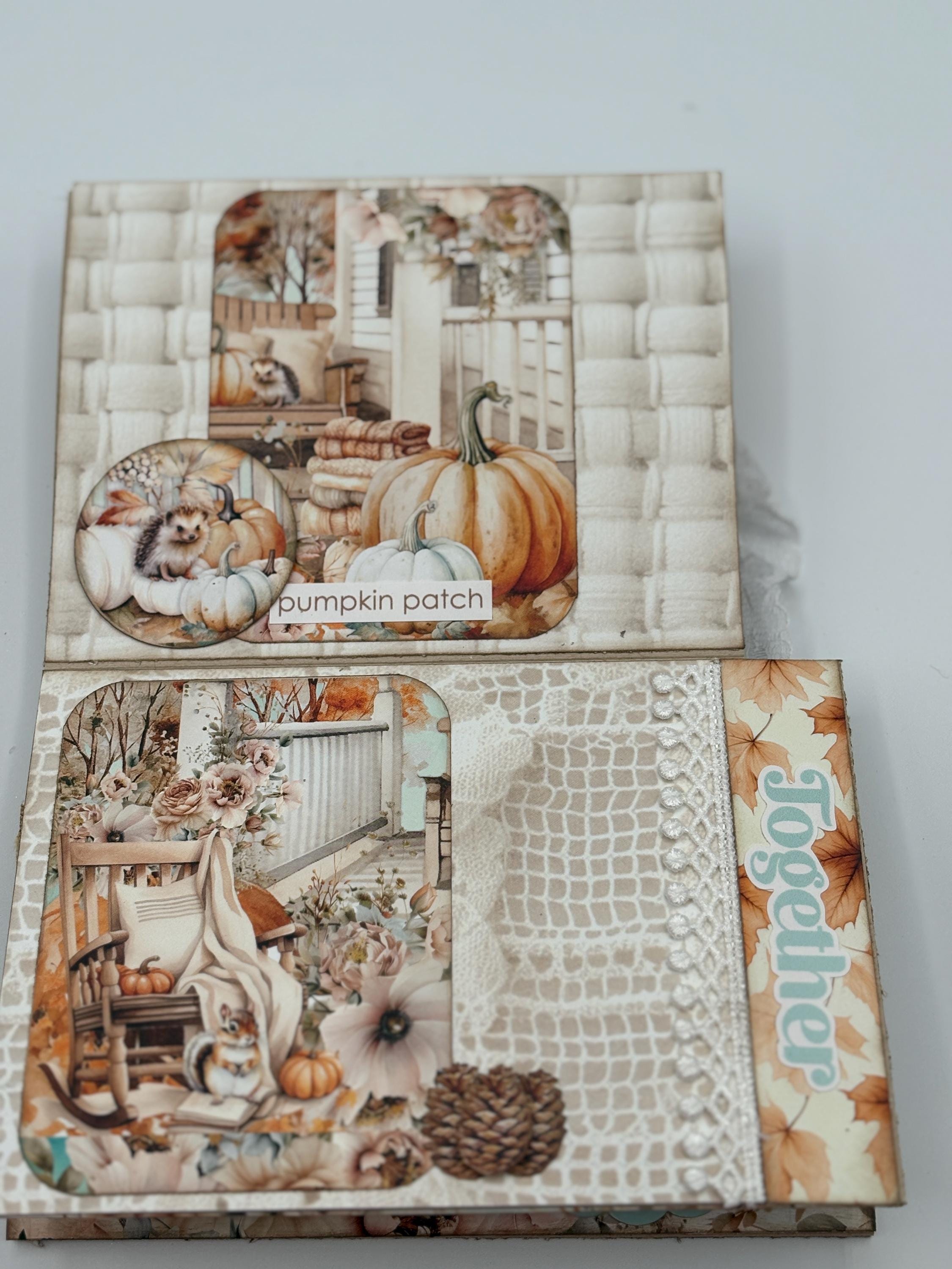 Decorated with ephemera, stickers, lace, distress ink, and liquid pearls