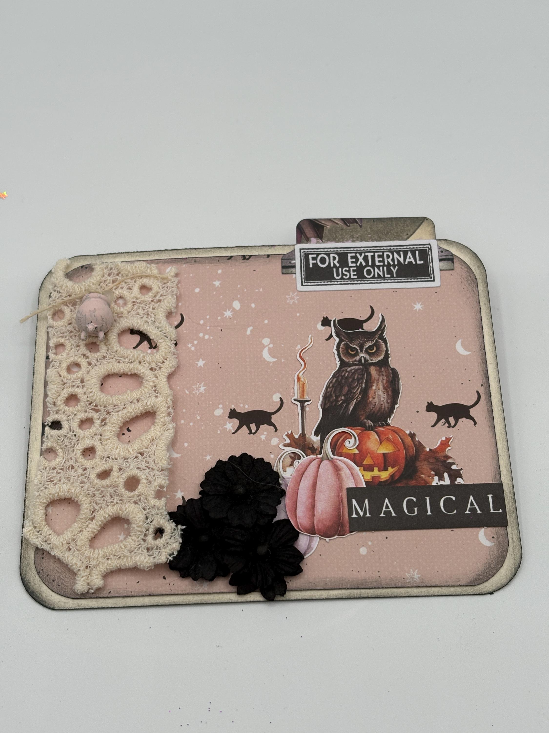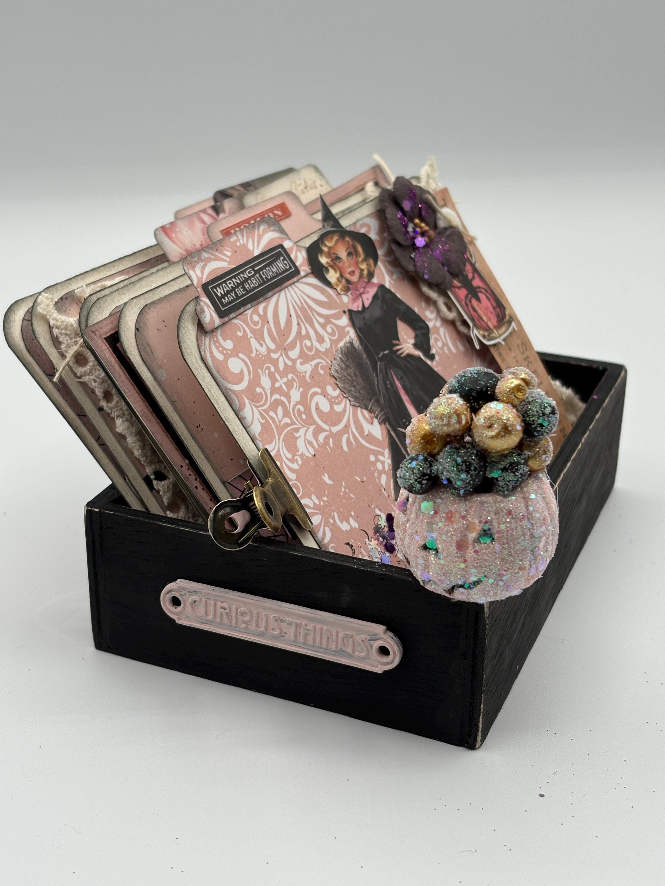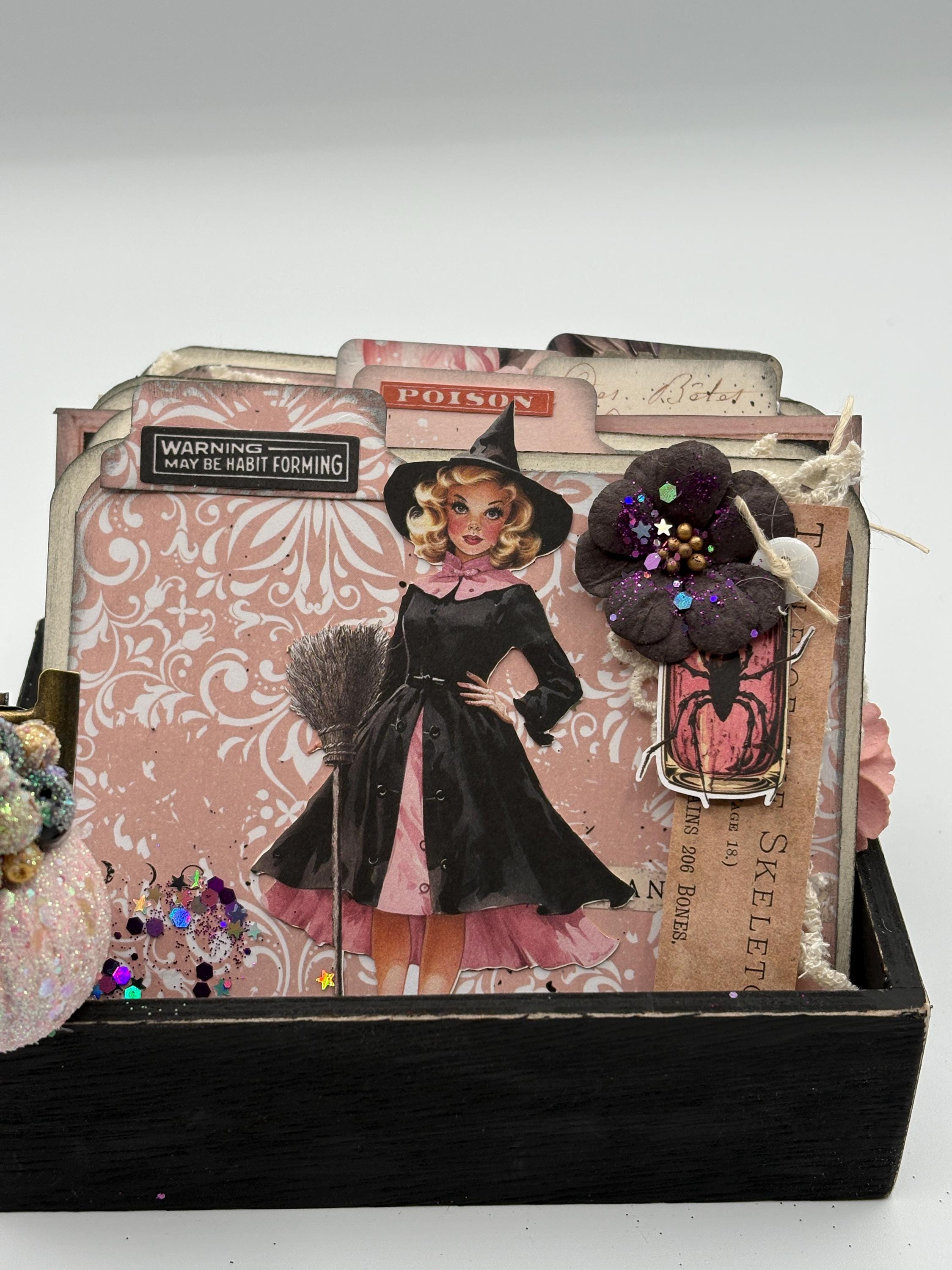 Materials: Box is made of wood and pages are made with card stock and pattern paper