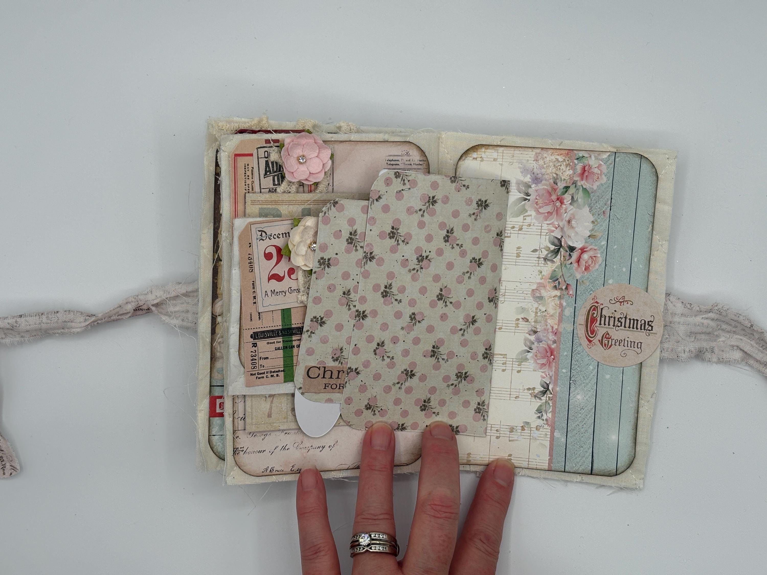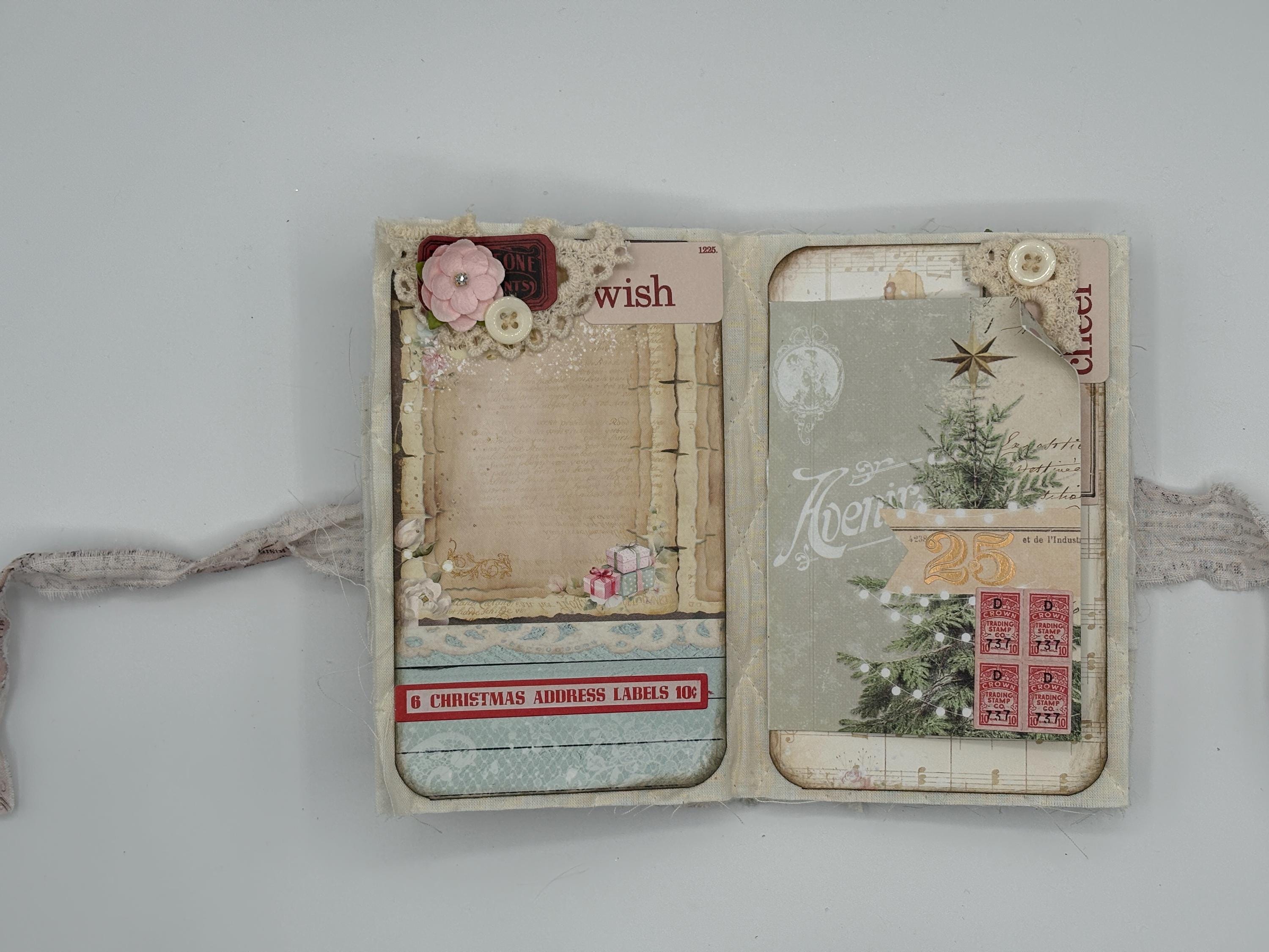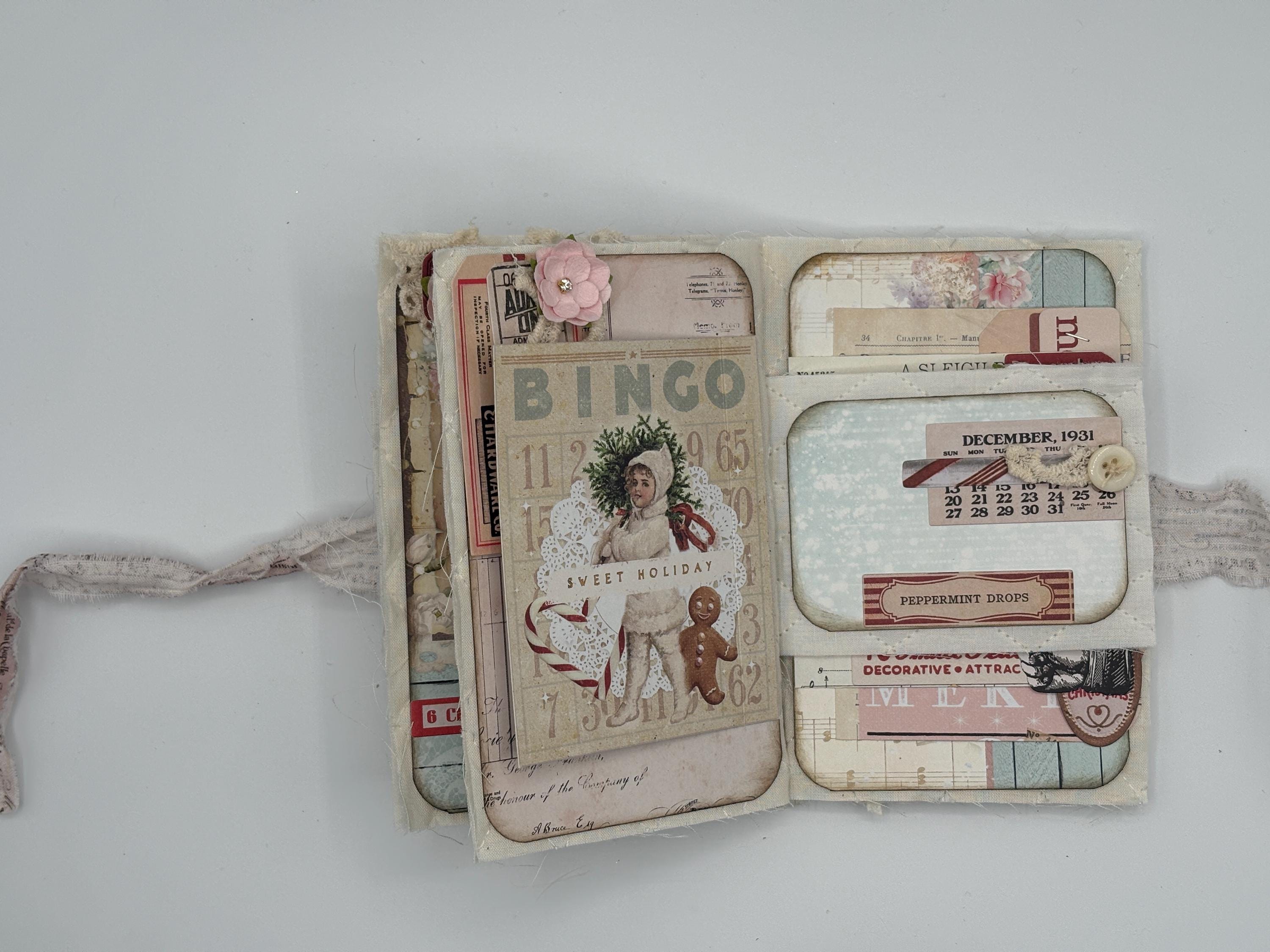 Decorated with lace, buttons, ephemera, flowers, pearls, glitter