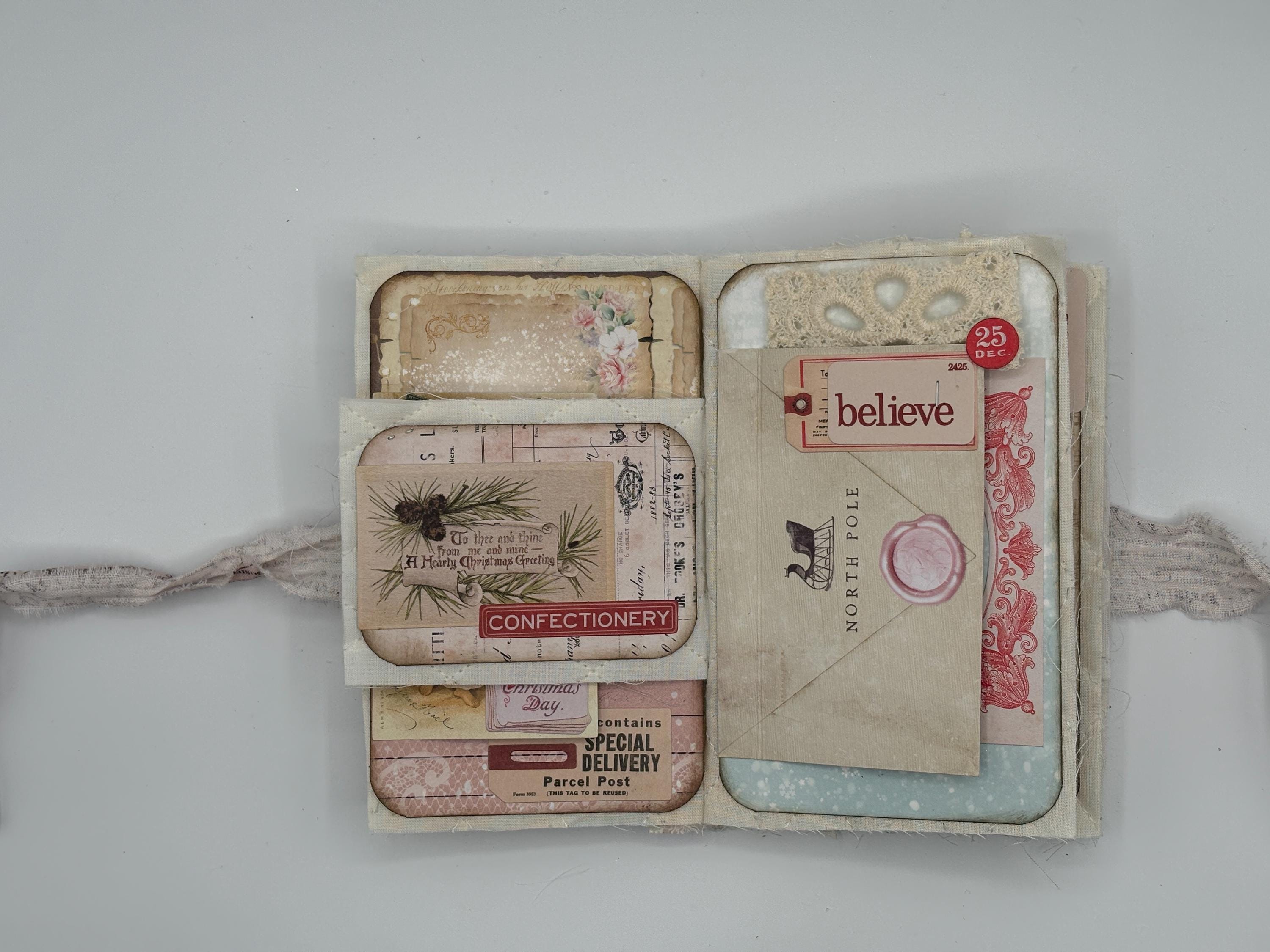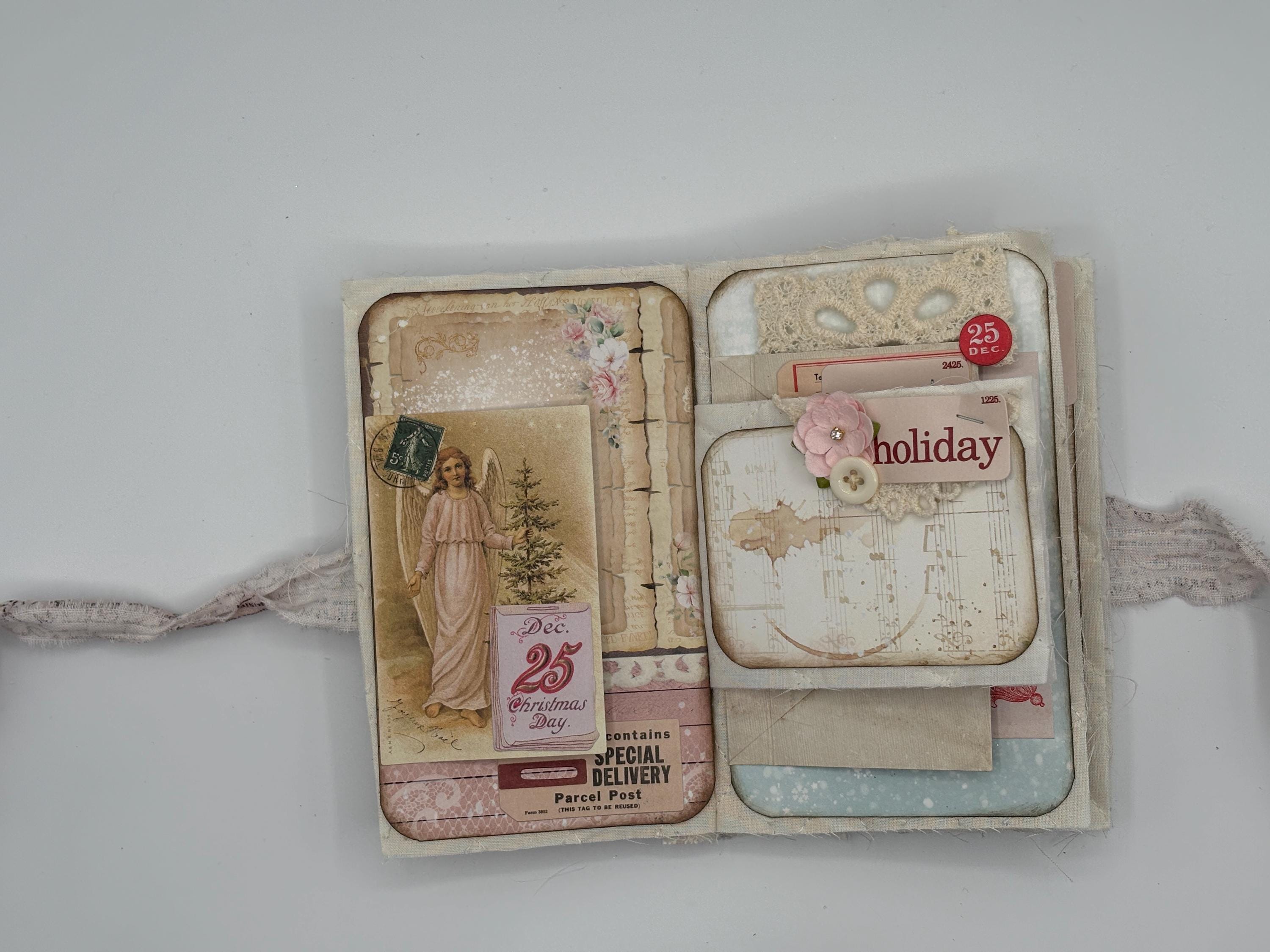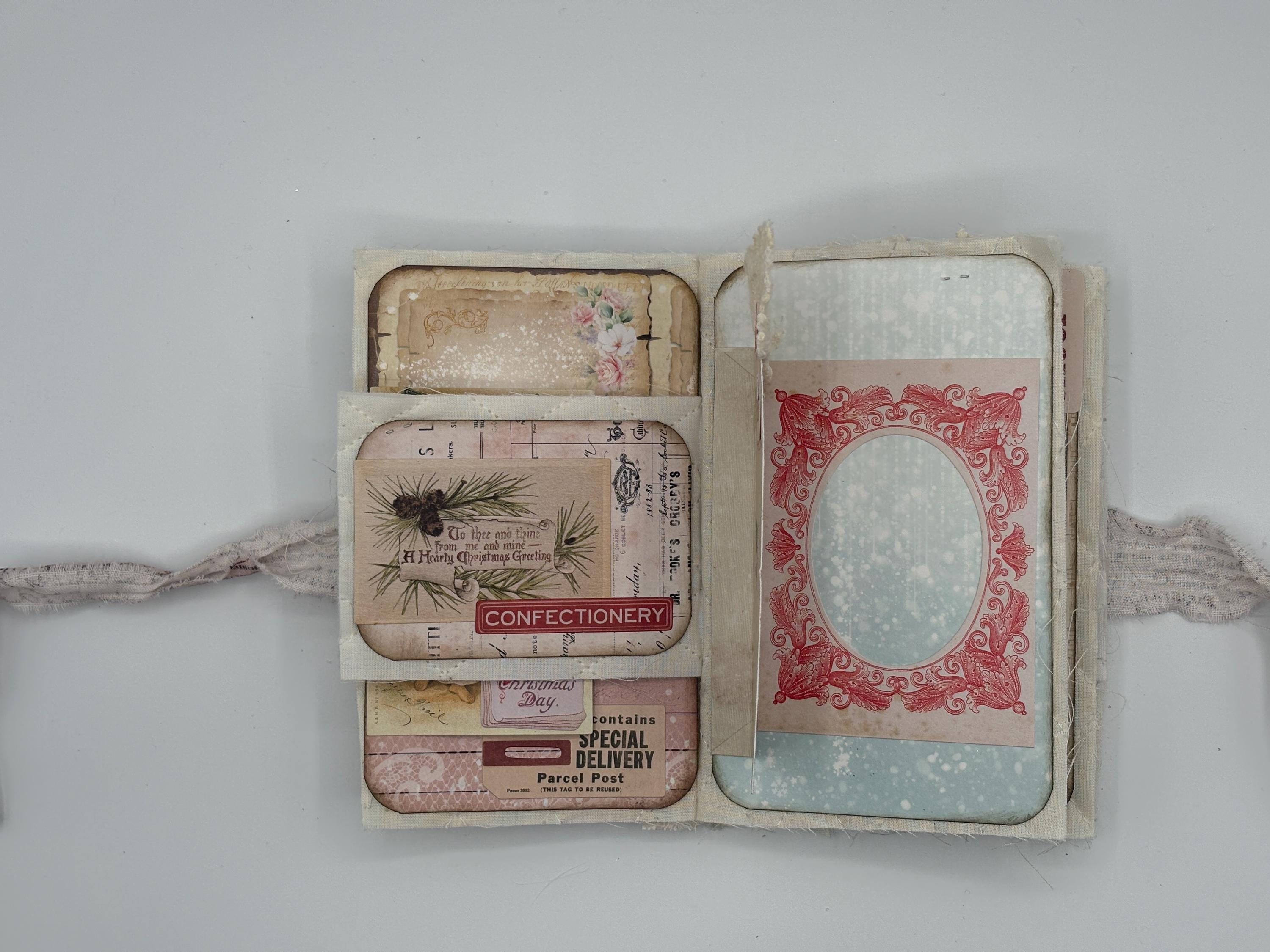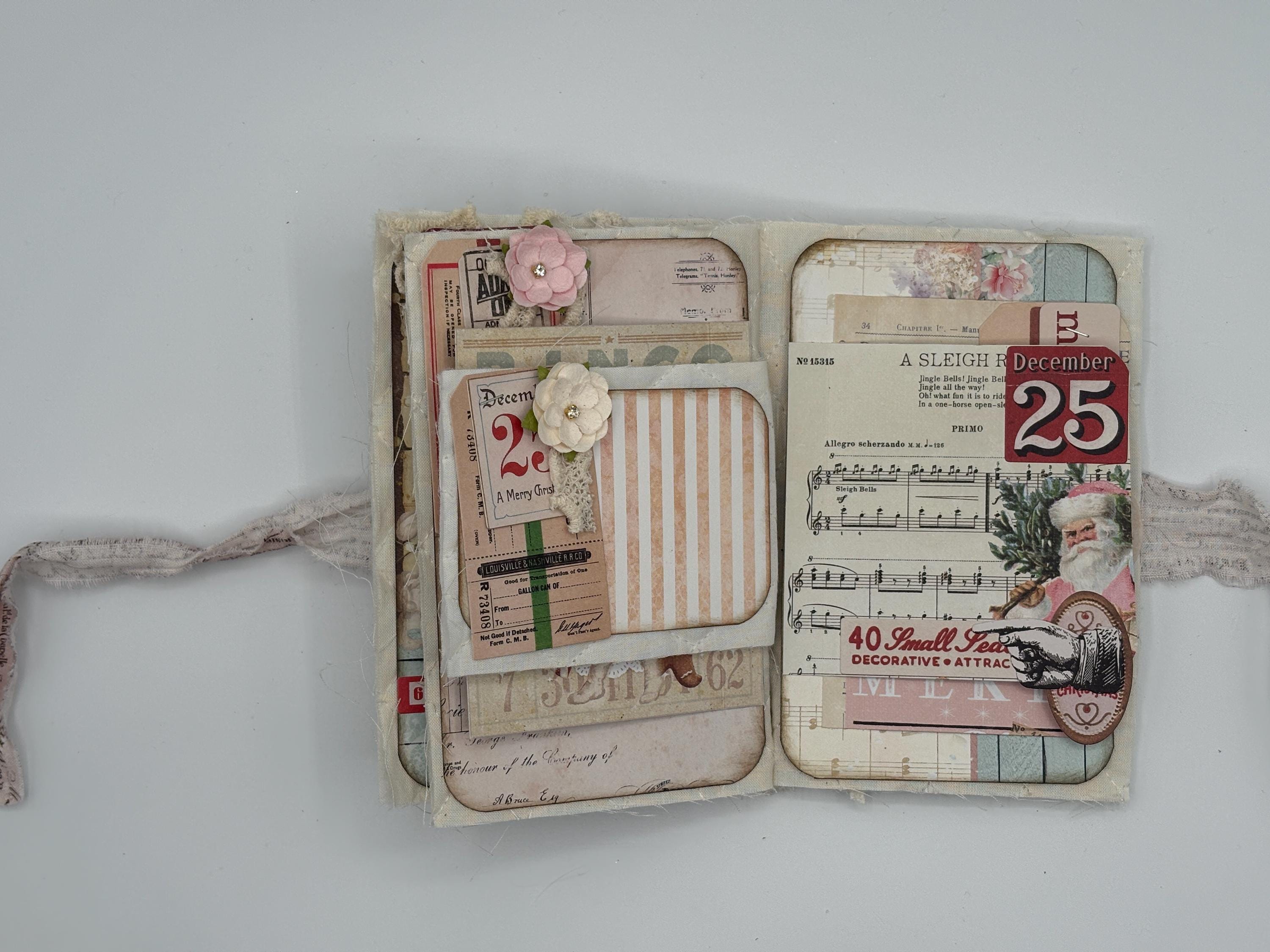 Decorated with lace, buttons, ephemera, flowers, pearls, glitter