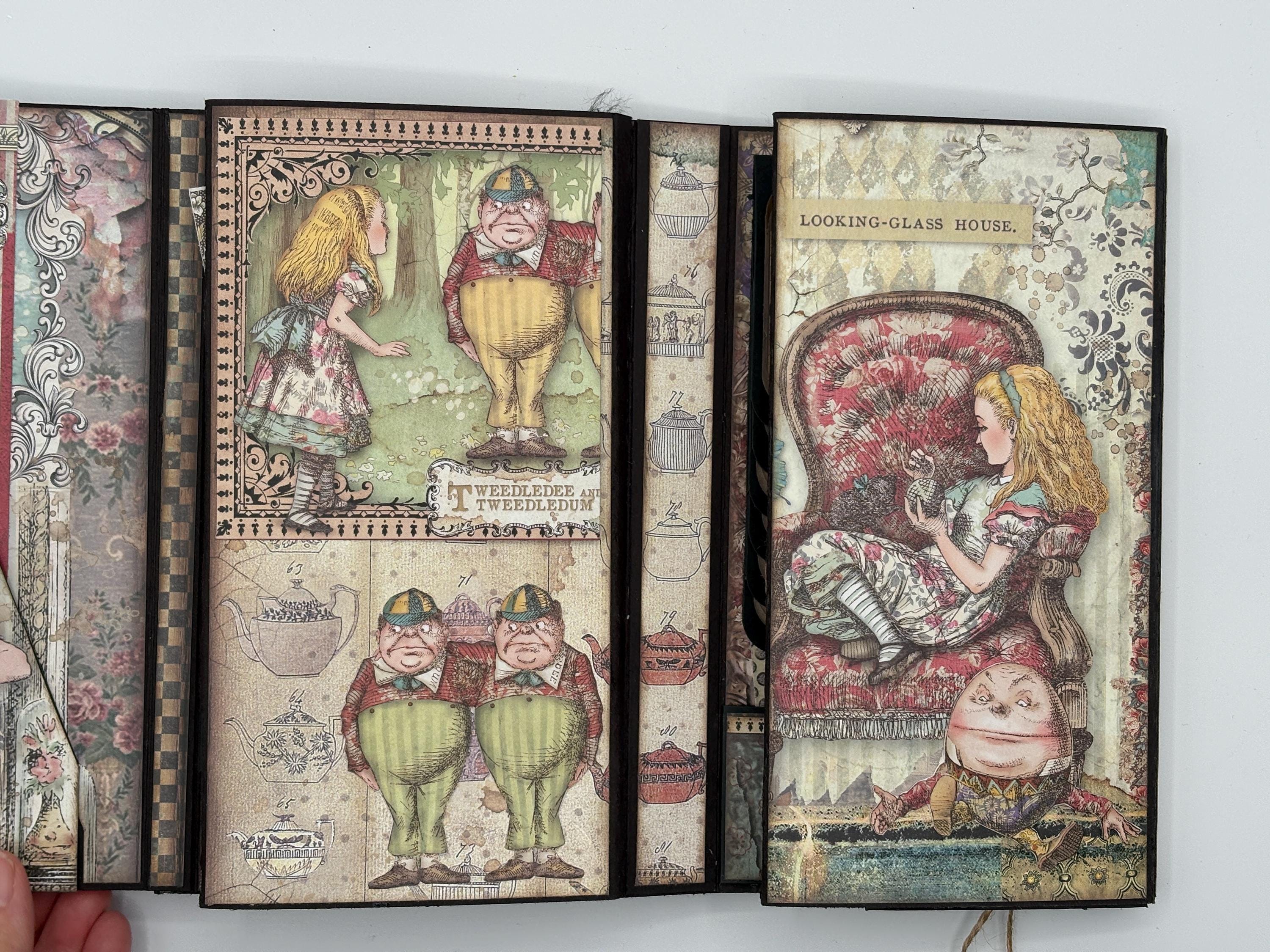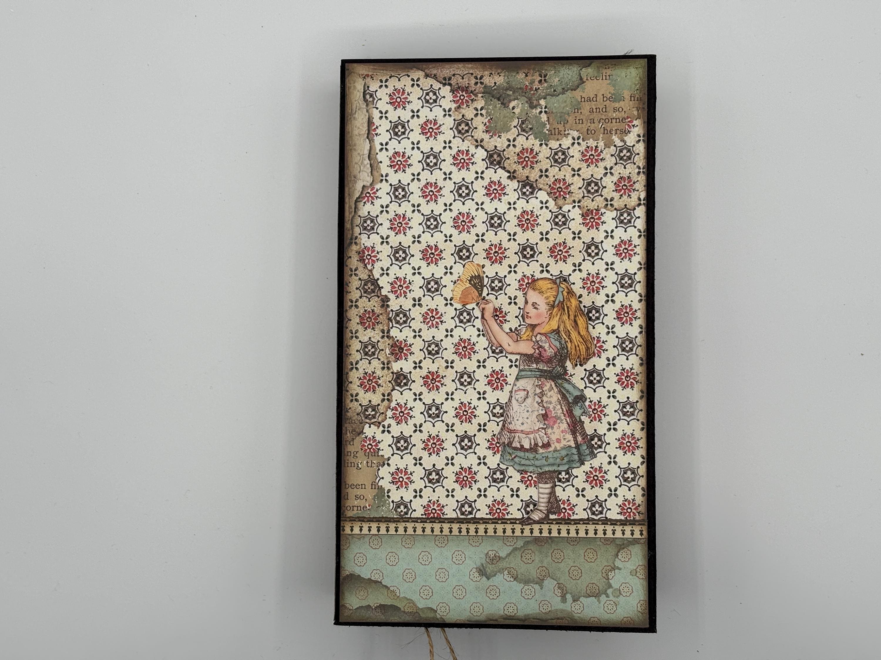Decorated with pattern paper, ephemera, flowers, distress inks, glitter spray, liquid pearls, and ribbon