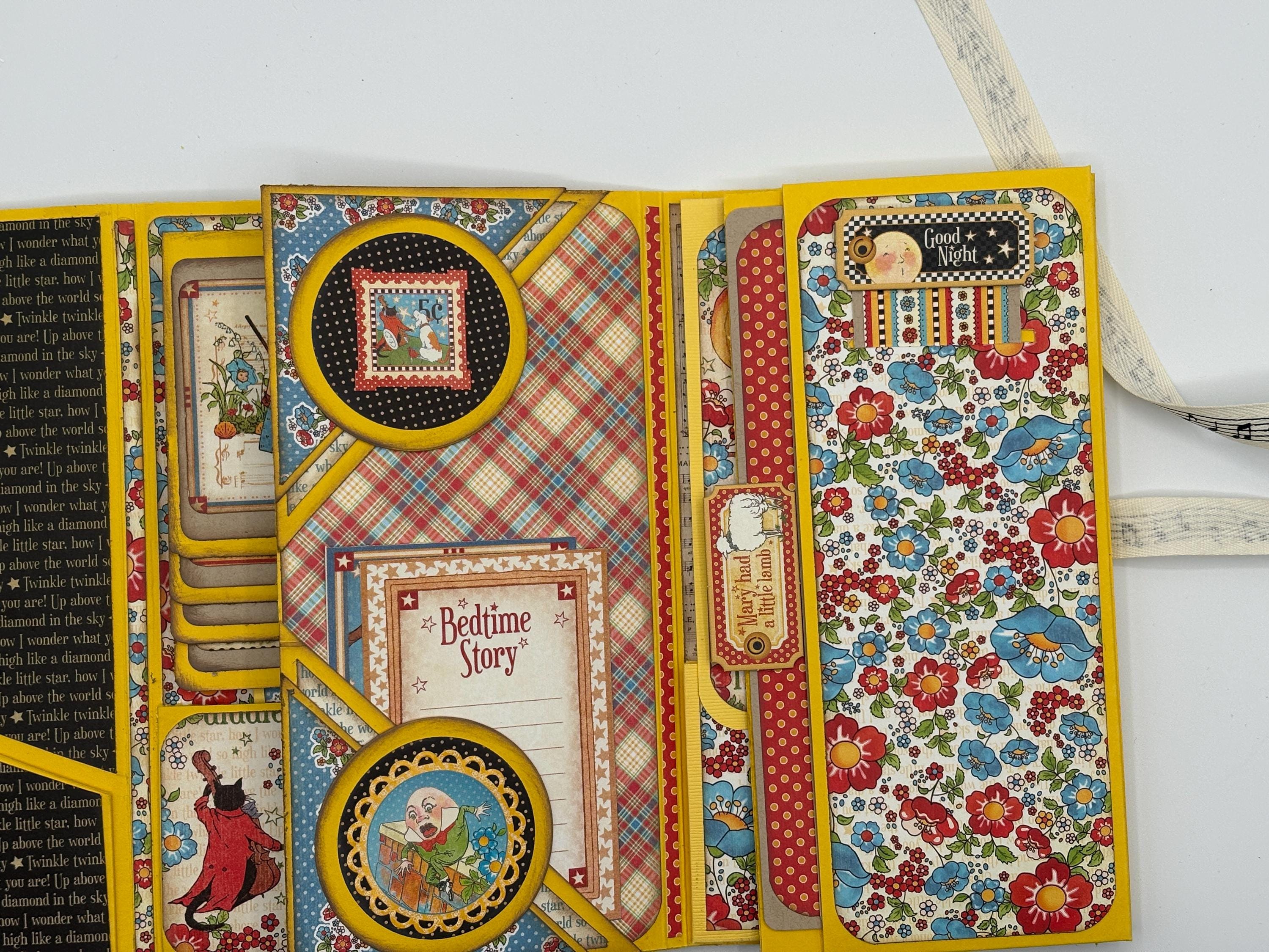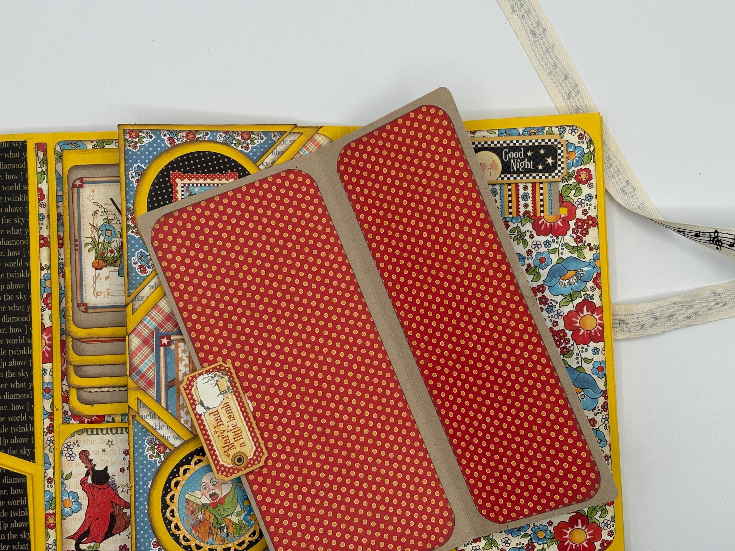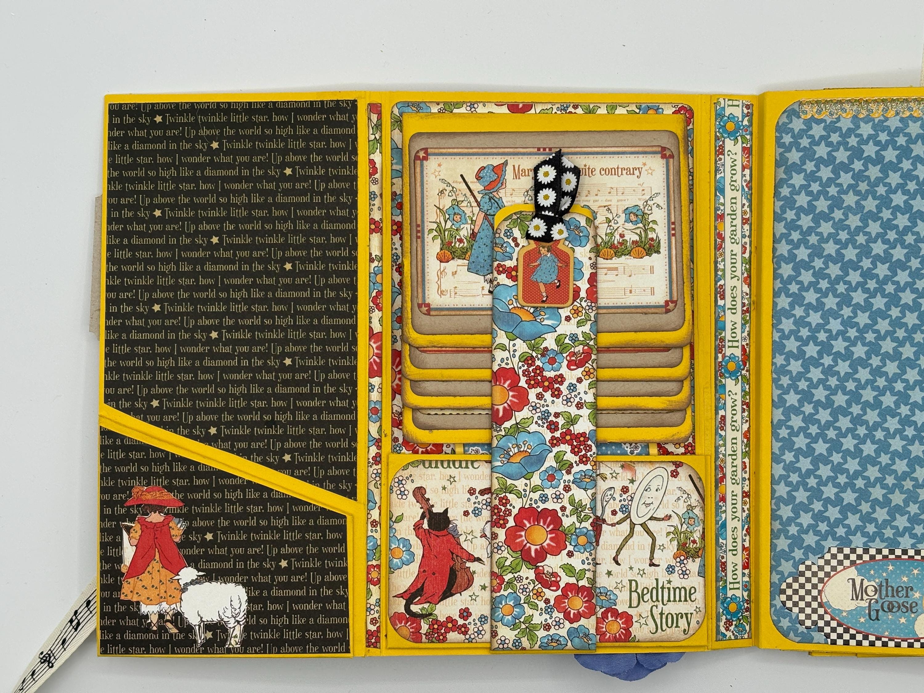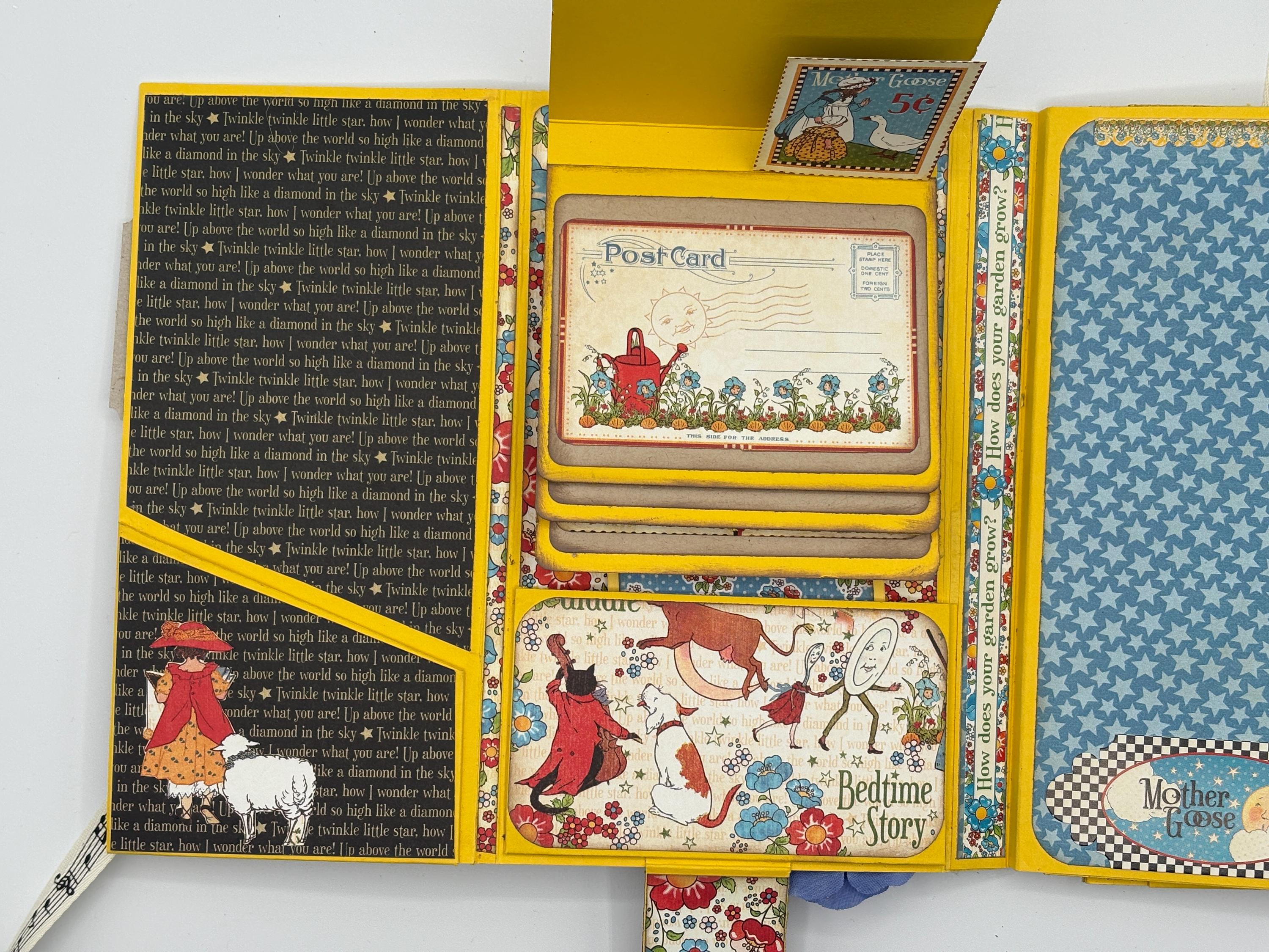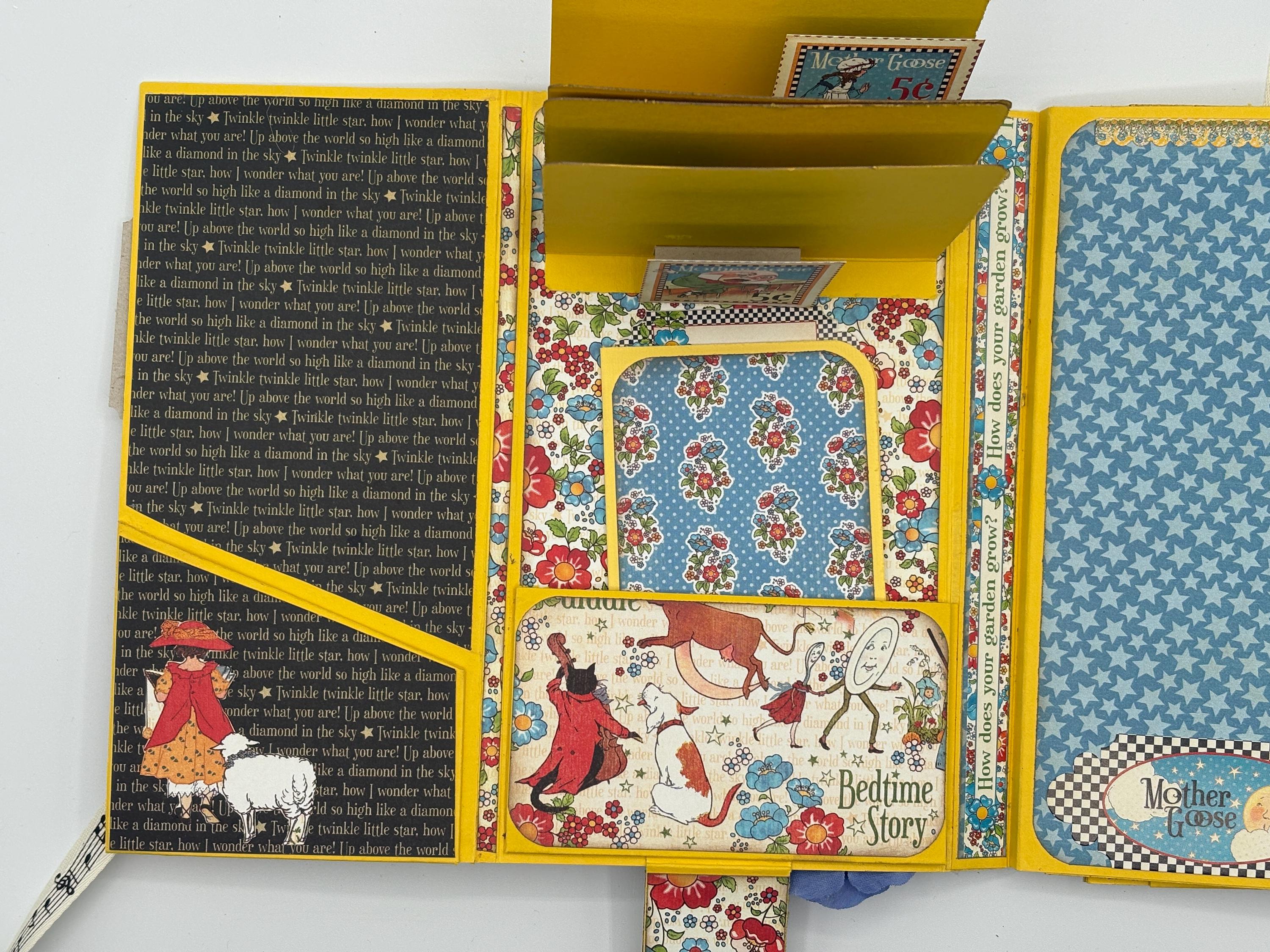 8-pages available to place photos or journal. There are also 8 pockets to place notes and more photos. 1 waterfall feature.