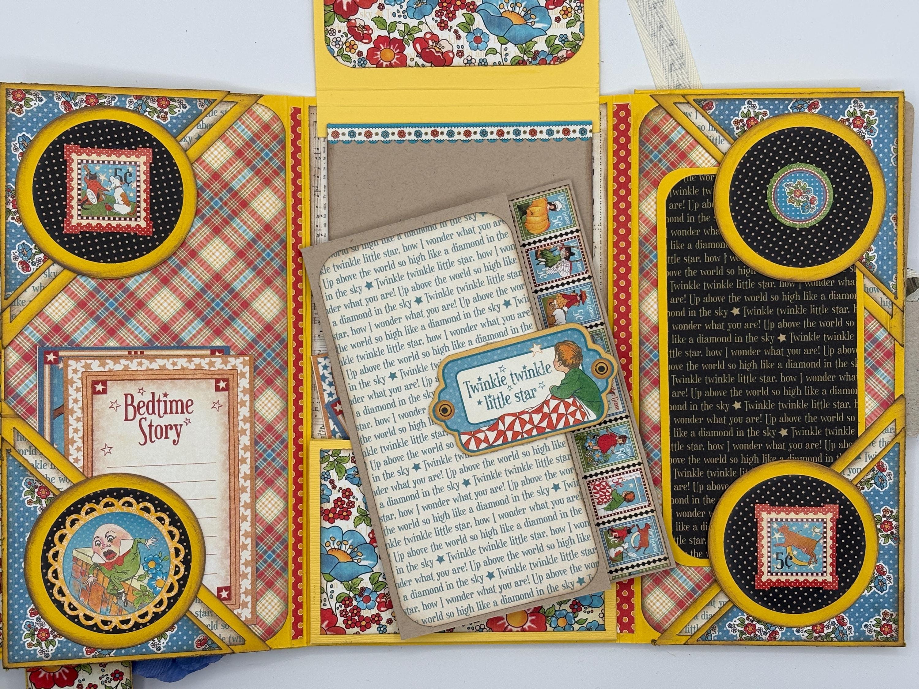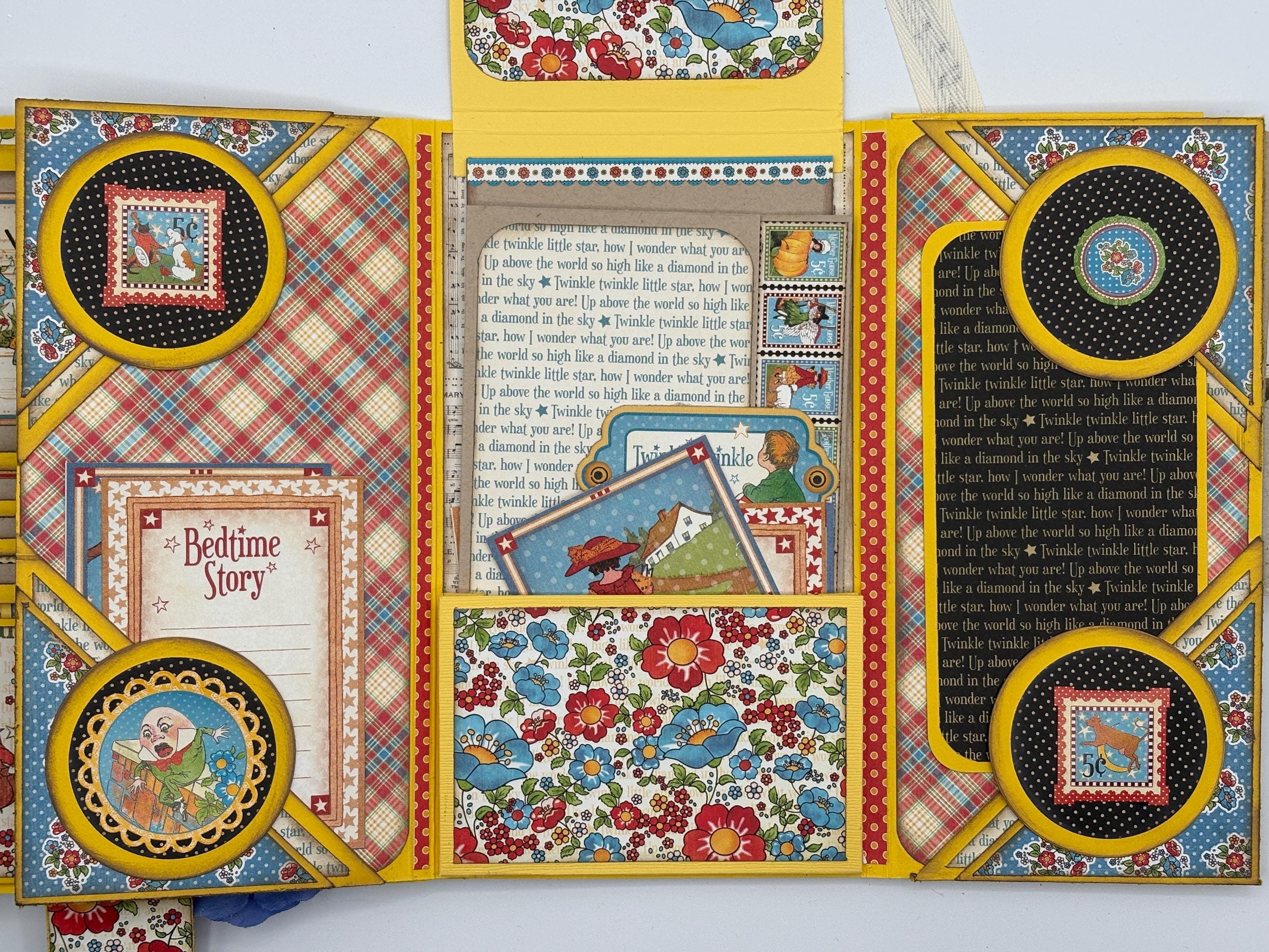 Decorated with pattern paper, ephemera, flowers, distress inks, glitter spray, liquid pearls