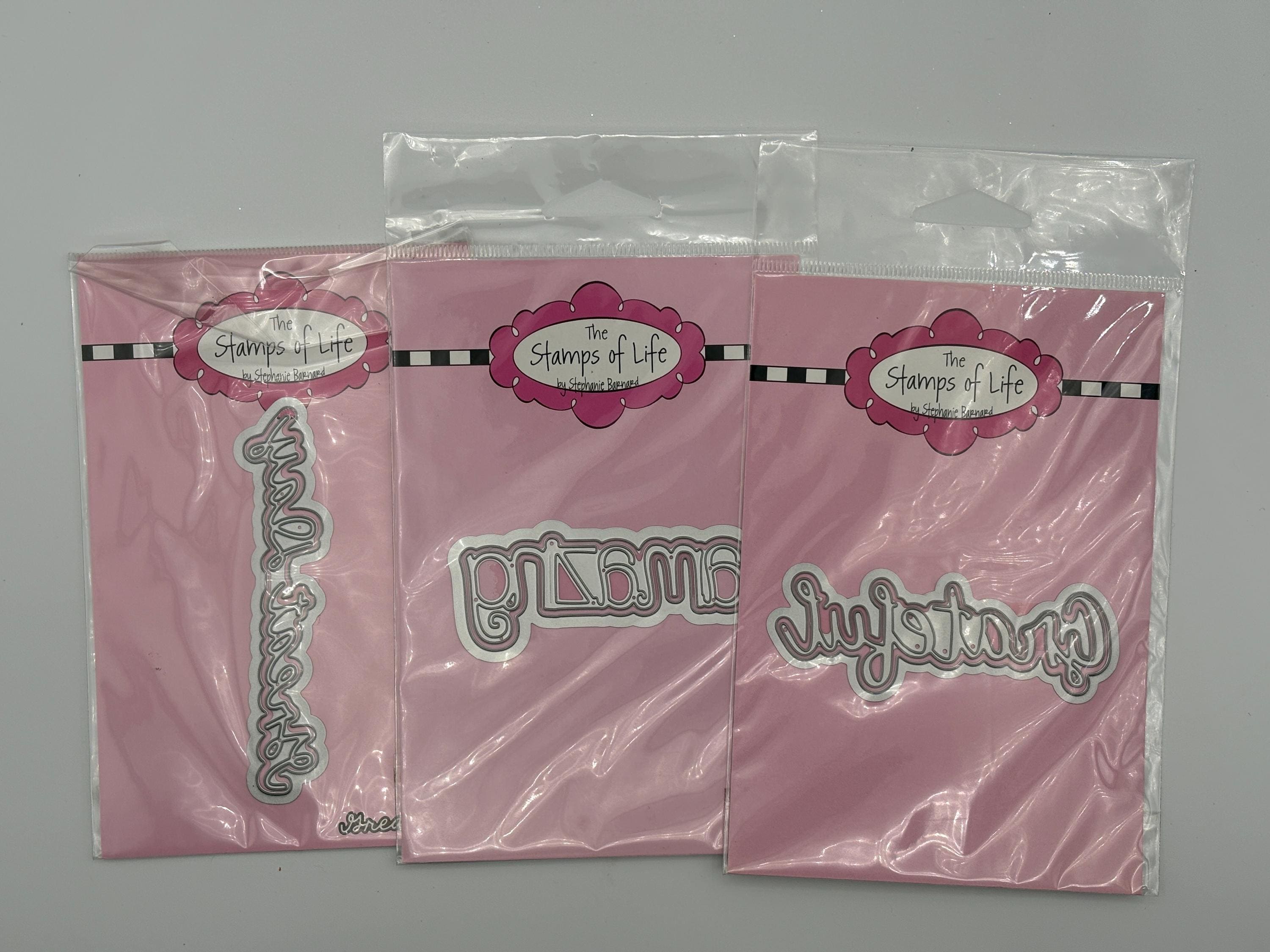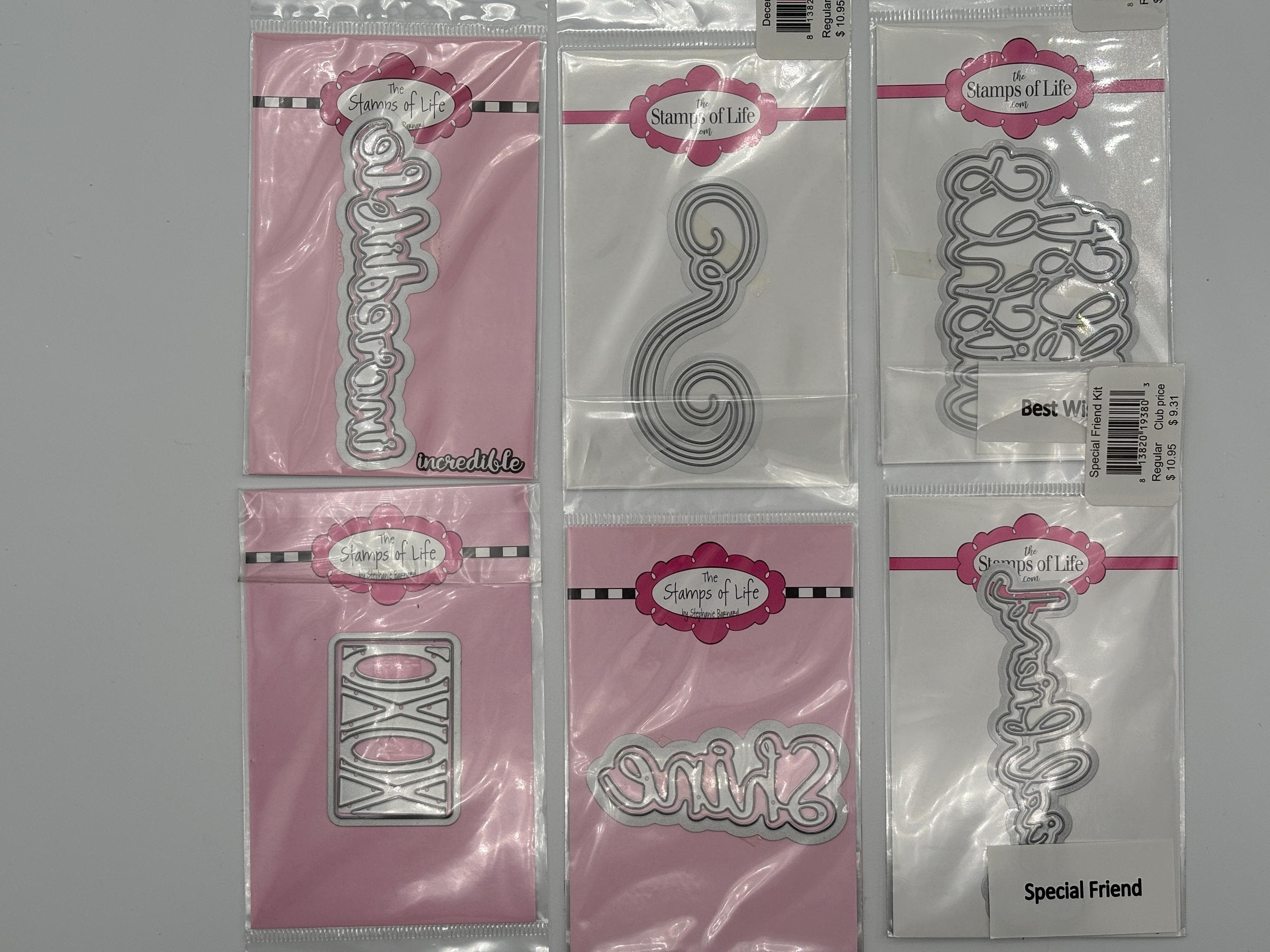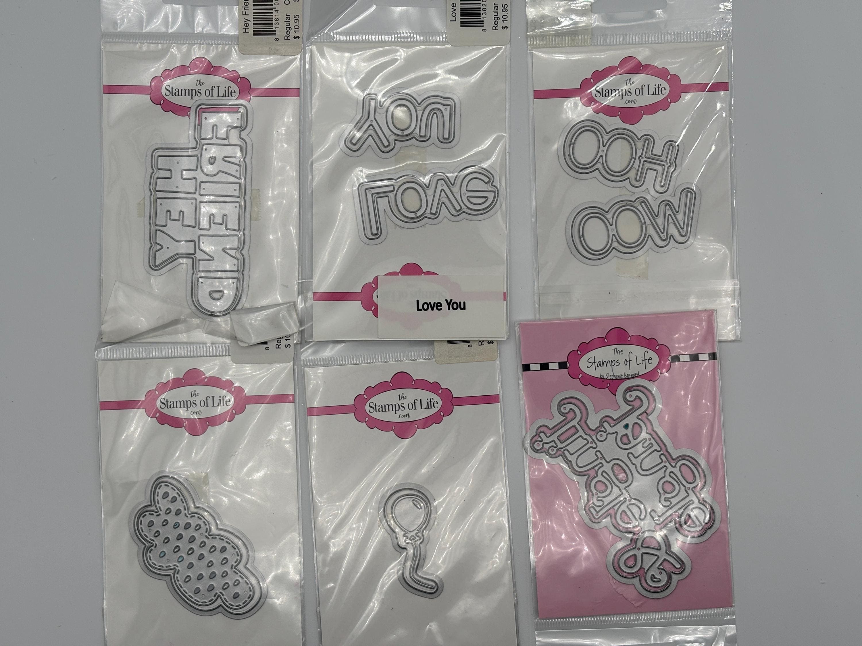 These dies have never been used and were sold by The Stamps of Life. This listing includes 38 sets of words/objects; Thanks so much, wonder, enjoy, adore, big hugs, sparkle (2), XOXO, incredible, flourish, shine, special friend, best wishes, love you, hey friend, cloud, balloon, jingle & jangle, woo hoo, Yay, awesome, leaf, what's up, you are blessed, sending smiles, joyful, just because, happy hello, enjoy, double hearts, dream, best day, grateful, amazing, great day, good life, good times, hip hip hooray